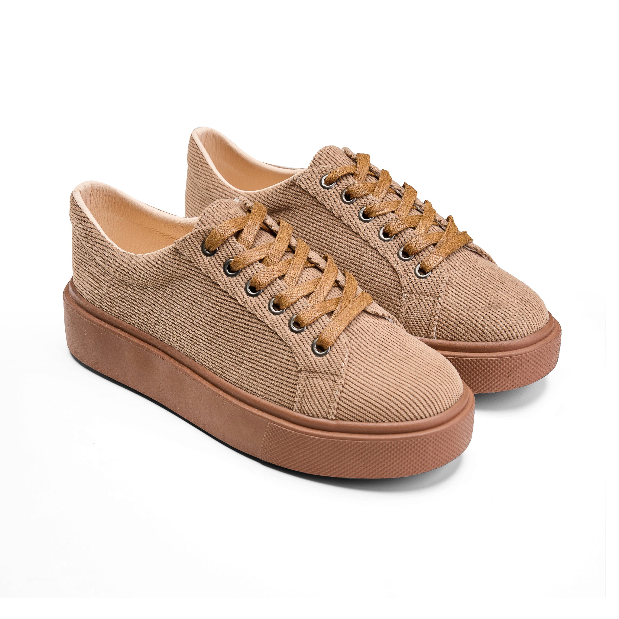 Update your sneaker game with these brown corduroy kicks! With a unique texture and versatile color, these sneakers are sure to make a statement. Plus, the corduroy material adds an extra touch of style and comfort. Step out in style with these playful and trendy sneakers!