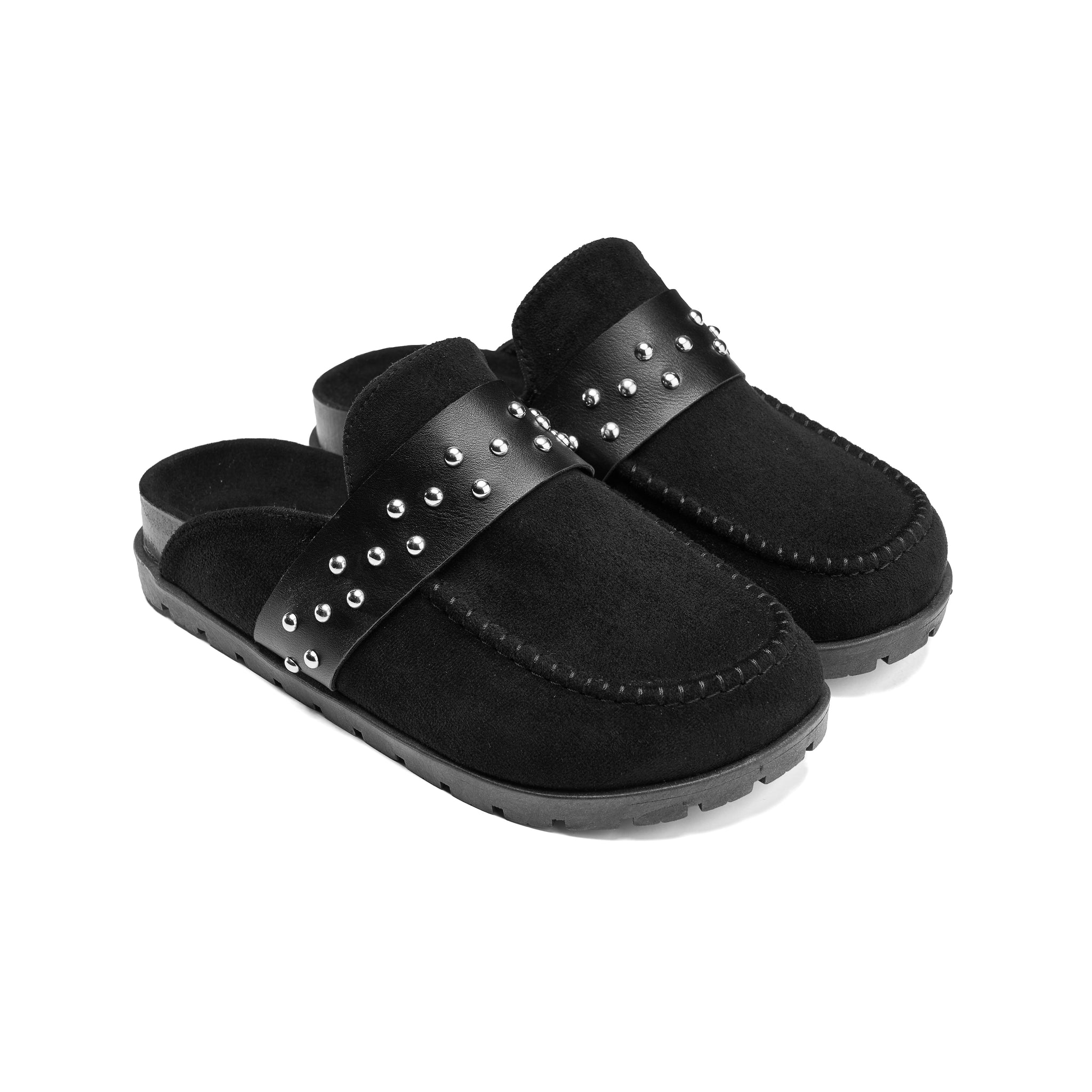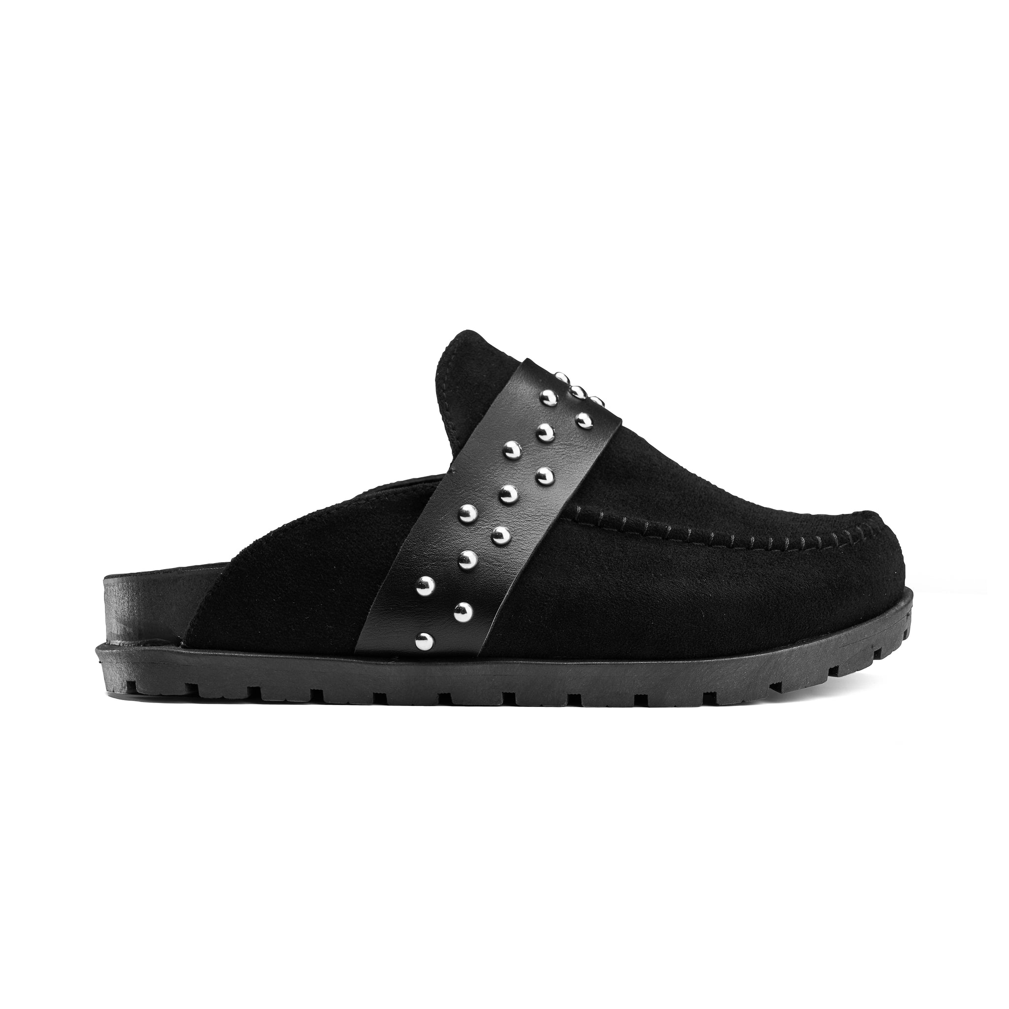 Step into adventure with the Trail Studded Clog in Black! These clogs bring bold style and sturdy traction together, perfect for exploring both city streets and offbeat paths. The studded sole offers excellent grip while adding a touch of edgy charm. Comfortable and easy to slip on, they're ready to take you wherever your playful spirit leads.