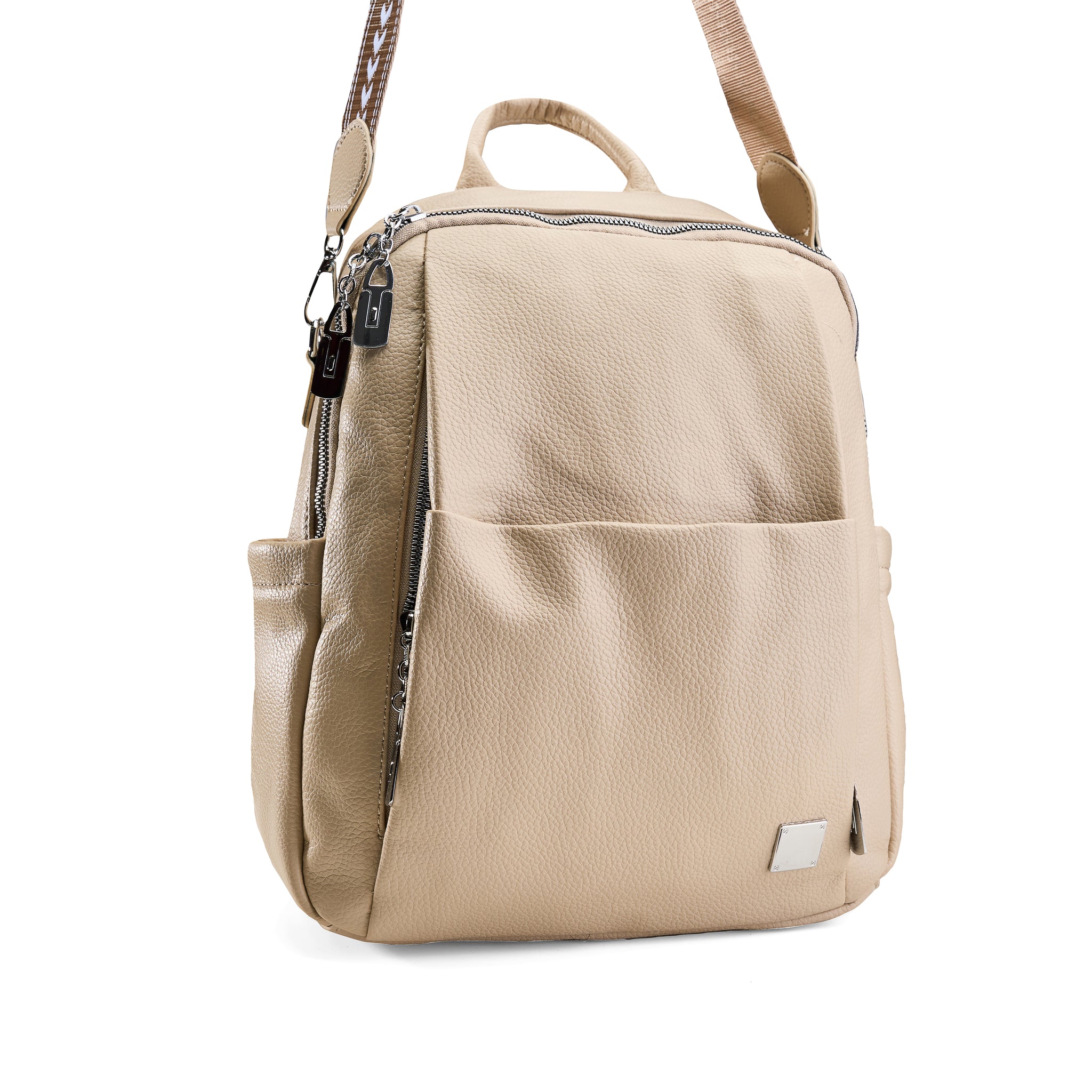 Pebbled Convertible Backpack - Beige