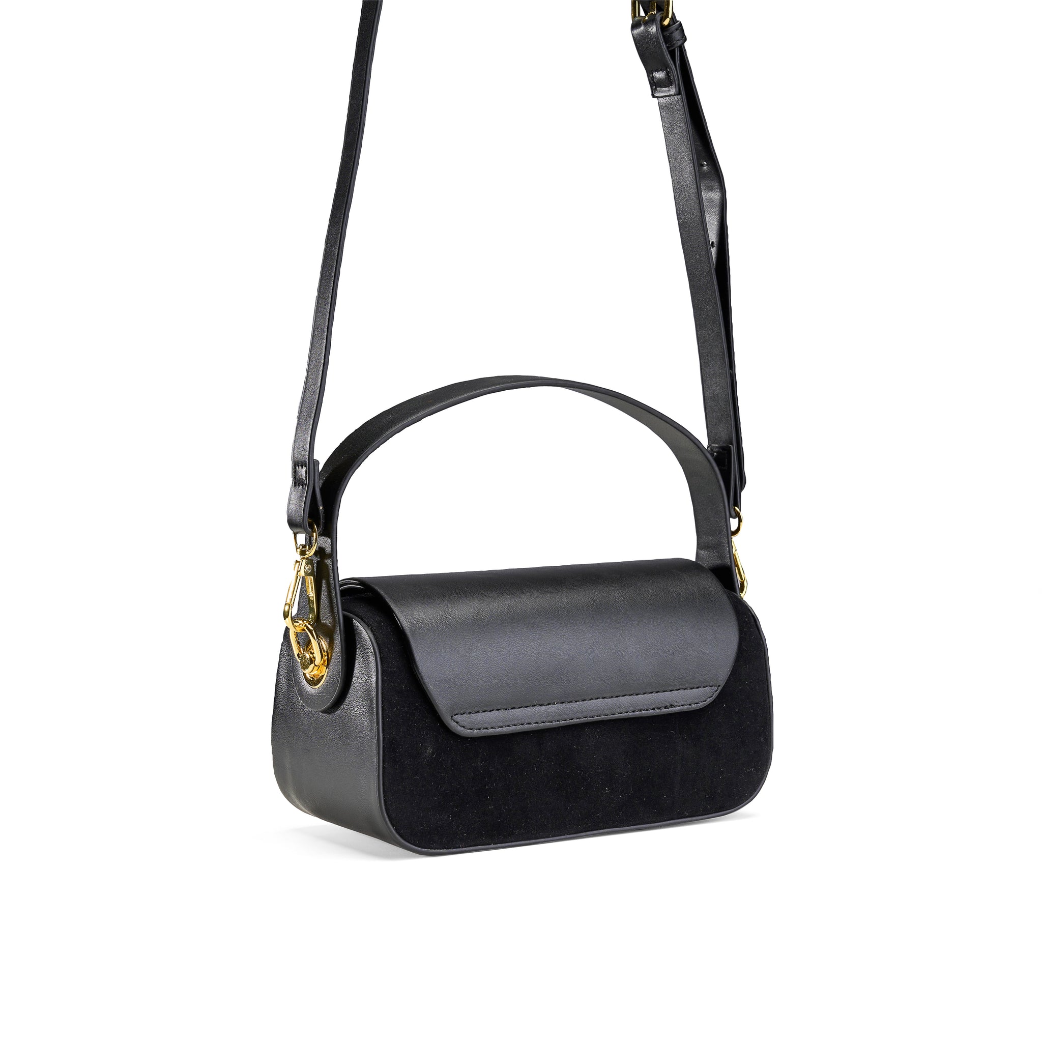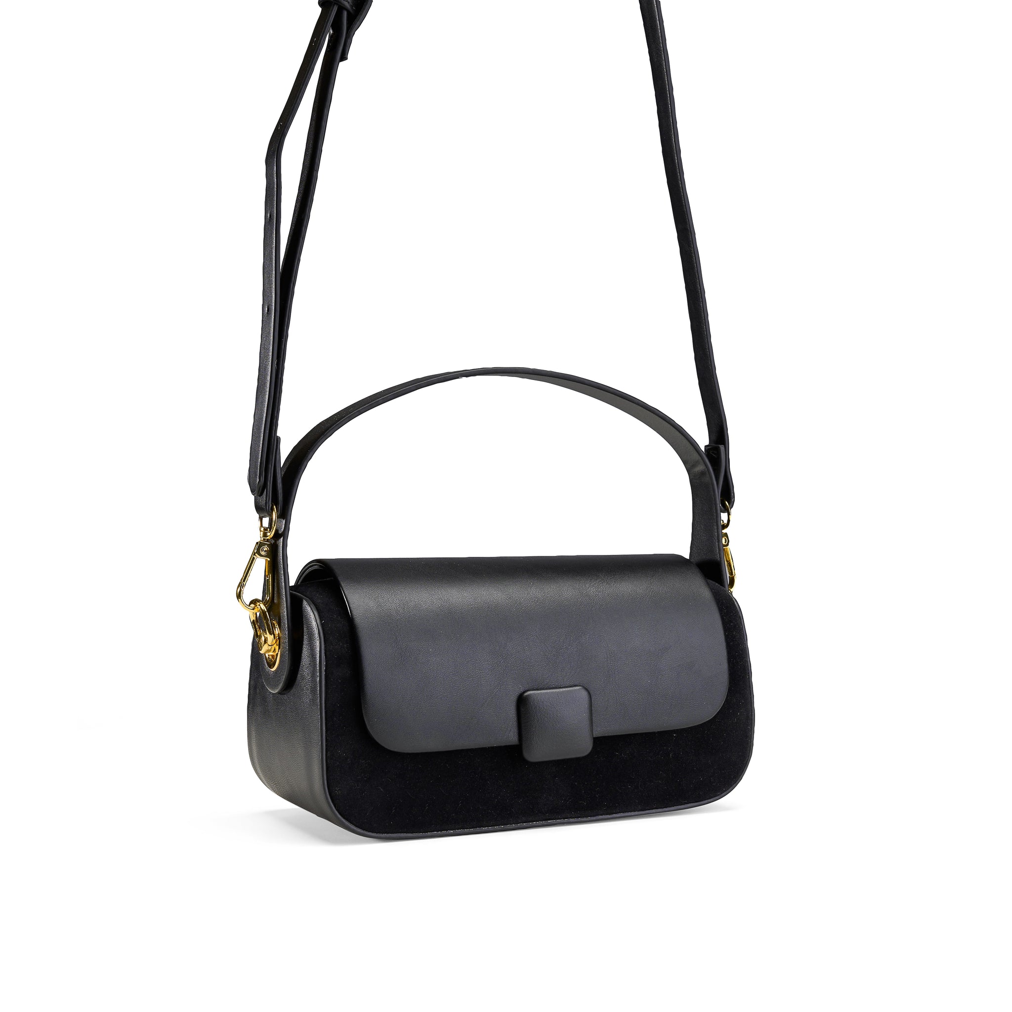 Add a dash of fun to your style with this Dual-Texture Flap-Over Bag in sleek black. Its mix of textures keeps things interesting, while the spacious interior tucks away all your essentials with ease. Perfect for those who like a little twist on classic chic!