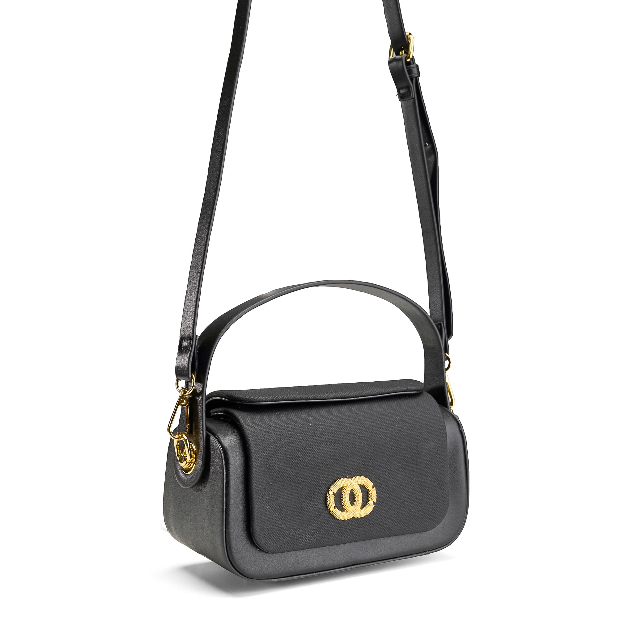 This black flap-over bag combines smooth and textured surfaces for a fun twist on everyday style. Its playful design adds character to any outfit while keeping your essentials close and secure. Perfect for those who love a little flair with their functionality!