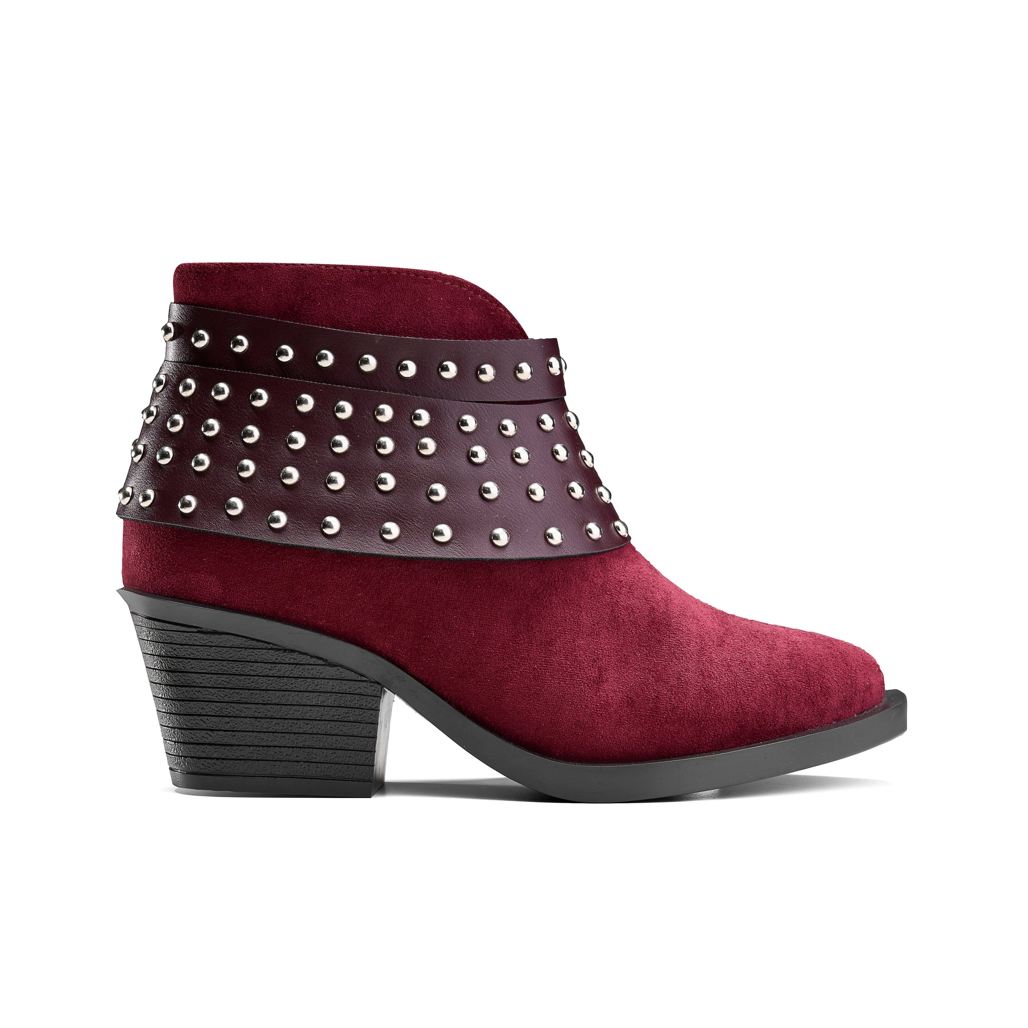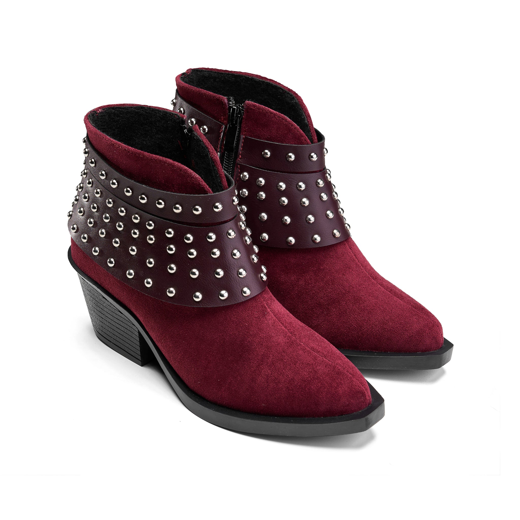 Step out in style with the Rivet Cuff Suede Ankle Boot in Maroon! These chic boots feature a suede finish and eye-catching rivet details around the cuff for a subtle edge. Perfect for adding a pop of color and attitude to your outfit, they’re as comfortable as they are playful. Whether you’re strolling the city or dancing through the weekend, these ankle boots will keep your look