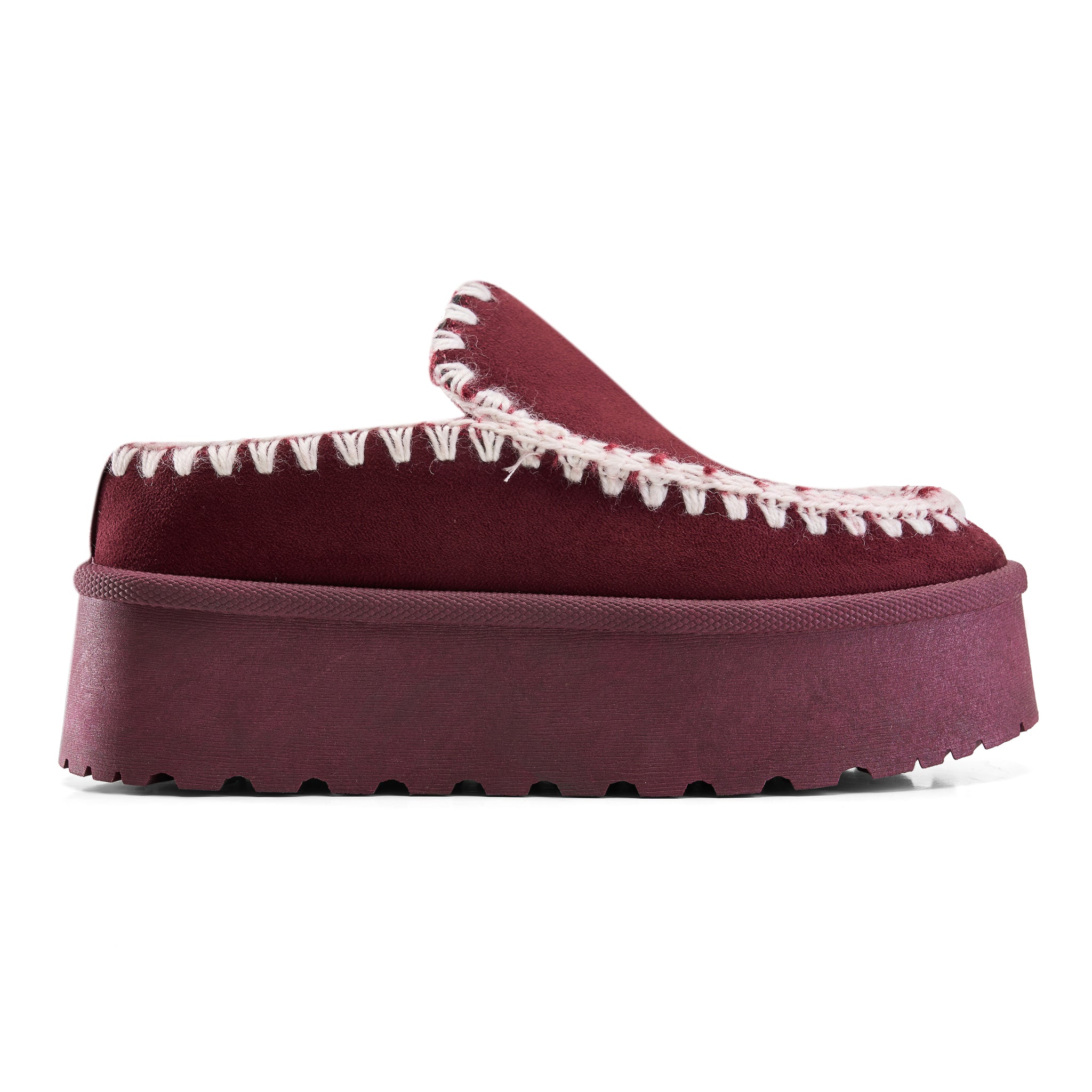 Step into comfort with our Stitched Cozy Platform Mule in rich maroon. This plush mule features detailed stitching that adds character while the cushioned platform sole keeps your feet happy all day long. Perfect for lounging at home or running quick errands, it's the cozy companion your feet have been craving. Slip it on and feel the difference!