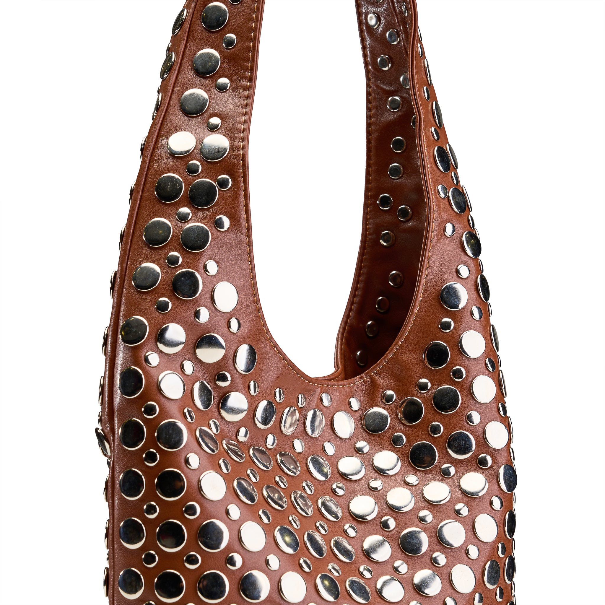 Mirrored Stud Hobo Bag - Camel