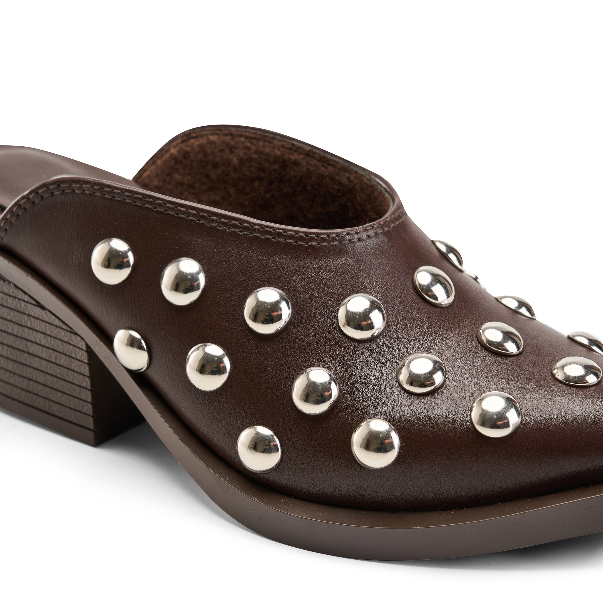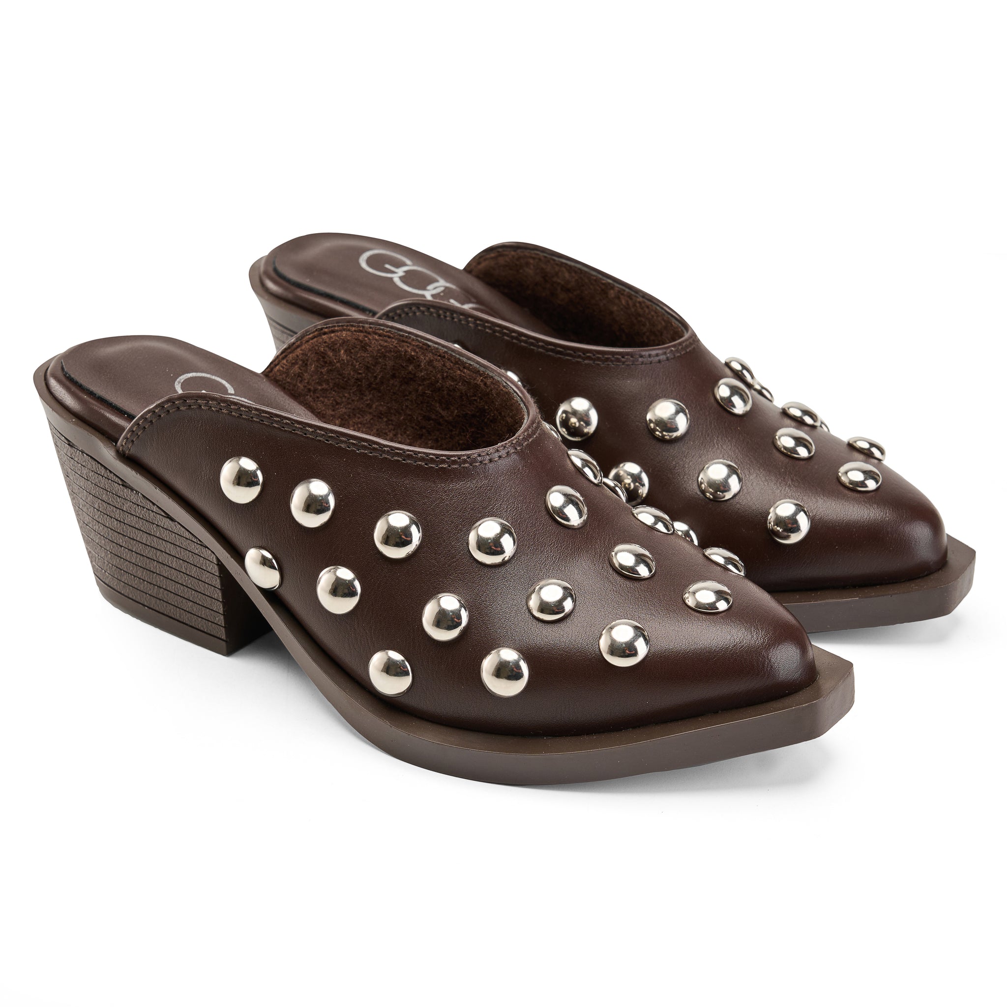 Step into effortless style with these chic brown Riviera Stud Mules. Adorned with eye-catching studs that add just the right amount of edge, they're perfect for elevating your everyday look or dressing up for a night out. The slip-on design means zero fuss—just slide them on and go. Whether you're running errands or heading to brunch, these mules deliver comfort and personality in one fabulous package. A wardrobe essential that proves you don't need to sacrifice style for convenience.