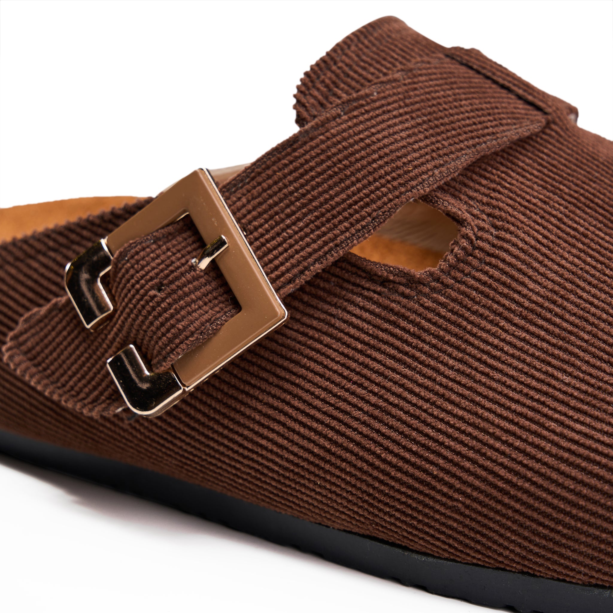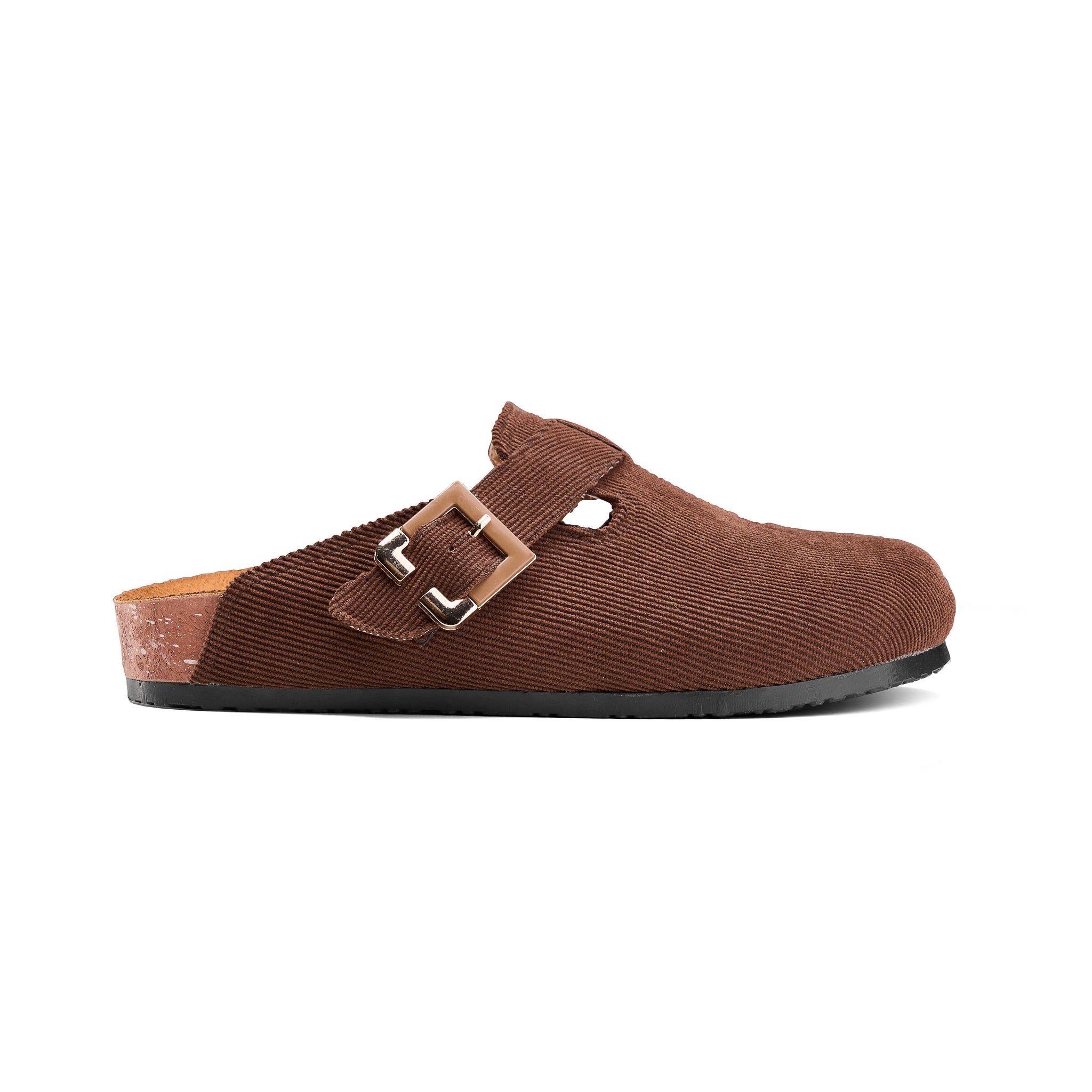 Corduroy Buckle Clogs with Premium Detail - Brown