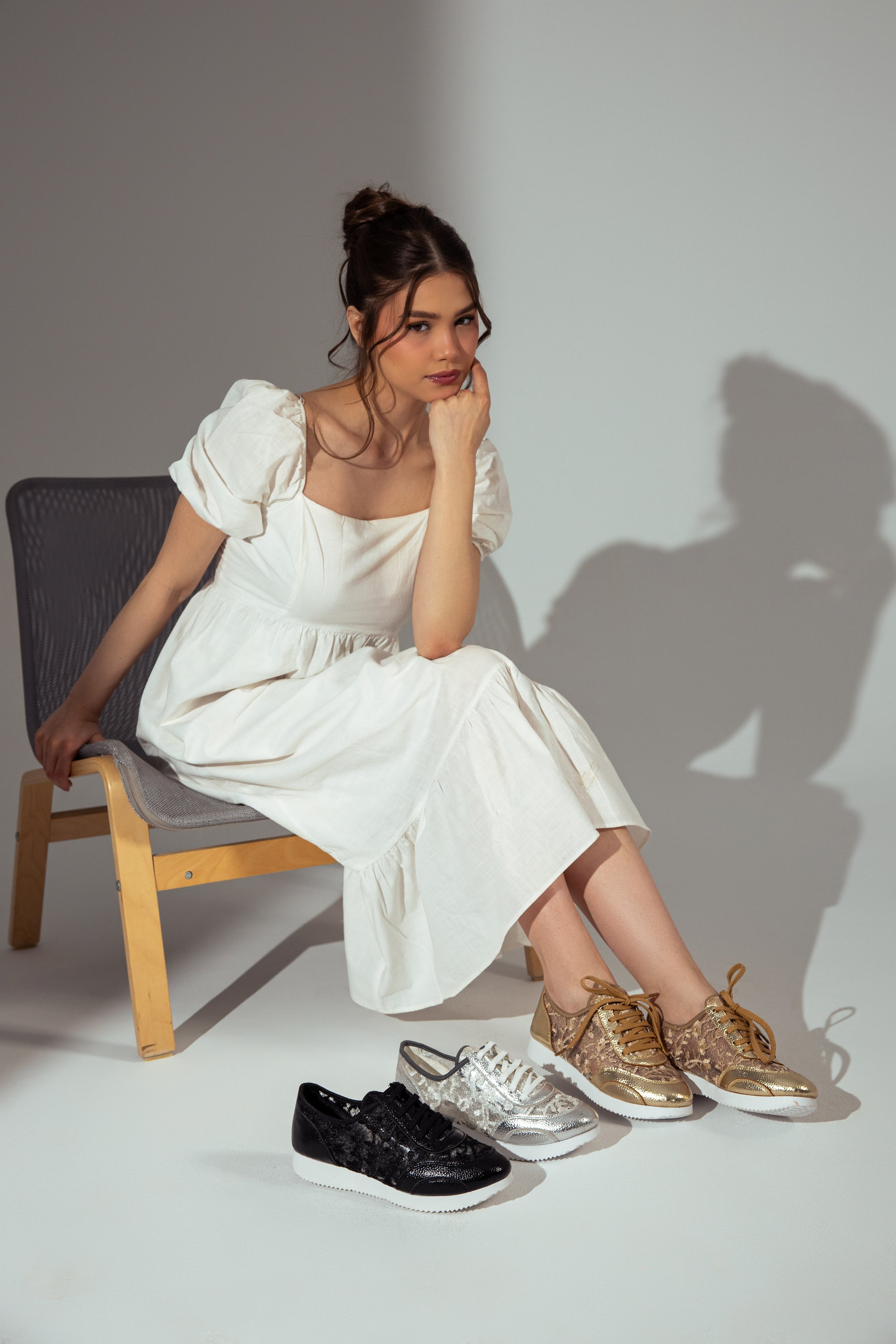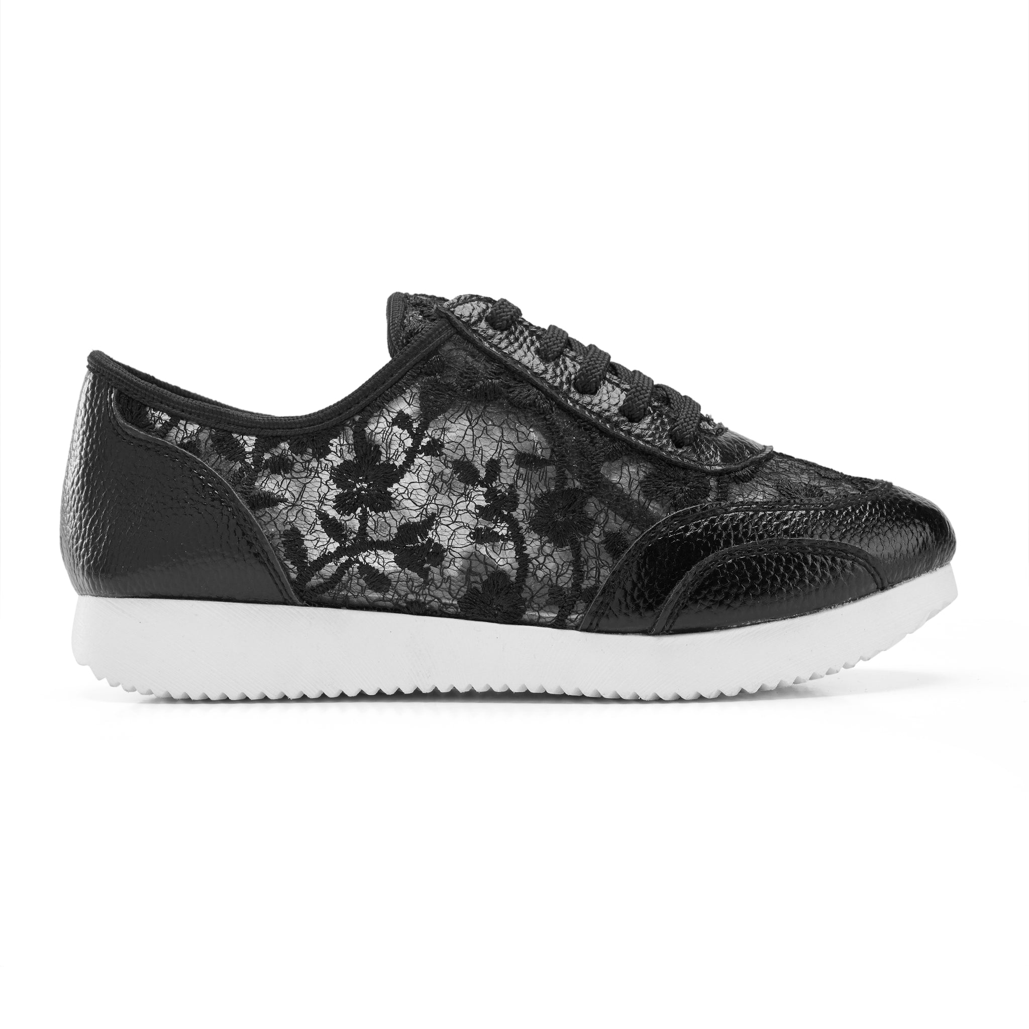 Elevate your casual footwear with a touch of feminine elegance. These chic lace-up sneakers feature a delicate floral lace overlay combined with a sporty silhouette, making them the perfect choice for those who want comfort without sacrificing style.