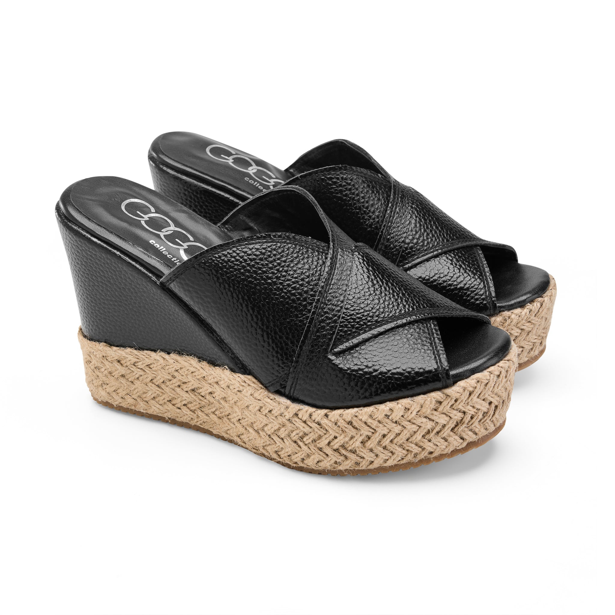 Elevate your summer wardrobe with our Metallic Espadrille Wedges. Combining a high-fashion glossy finish with the natural, rustic charm of a woven platform, these sandals are the ultimate statement piece for sunny days and warm evenings.