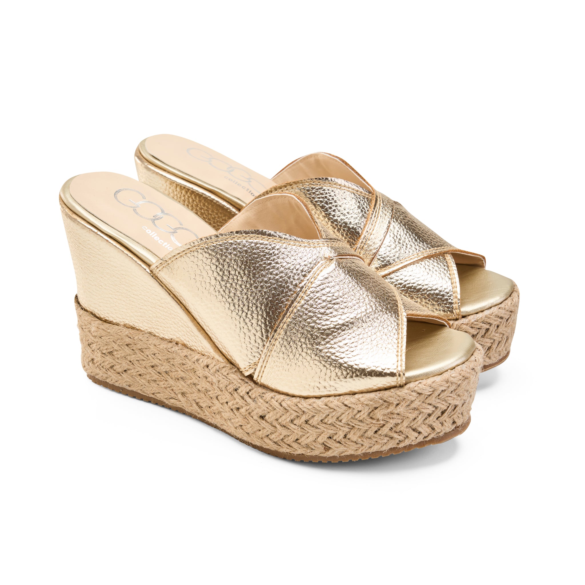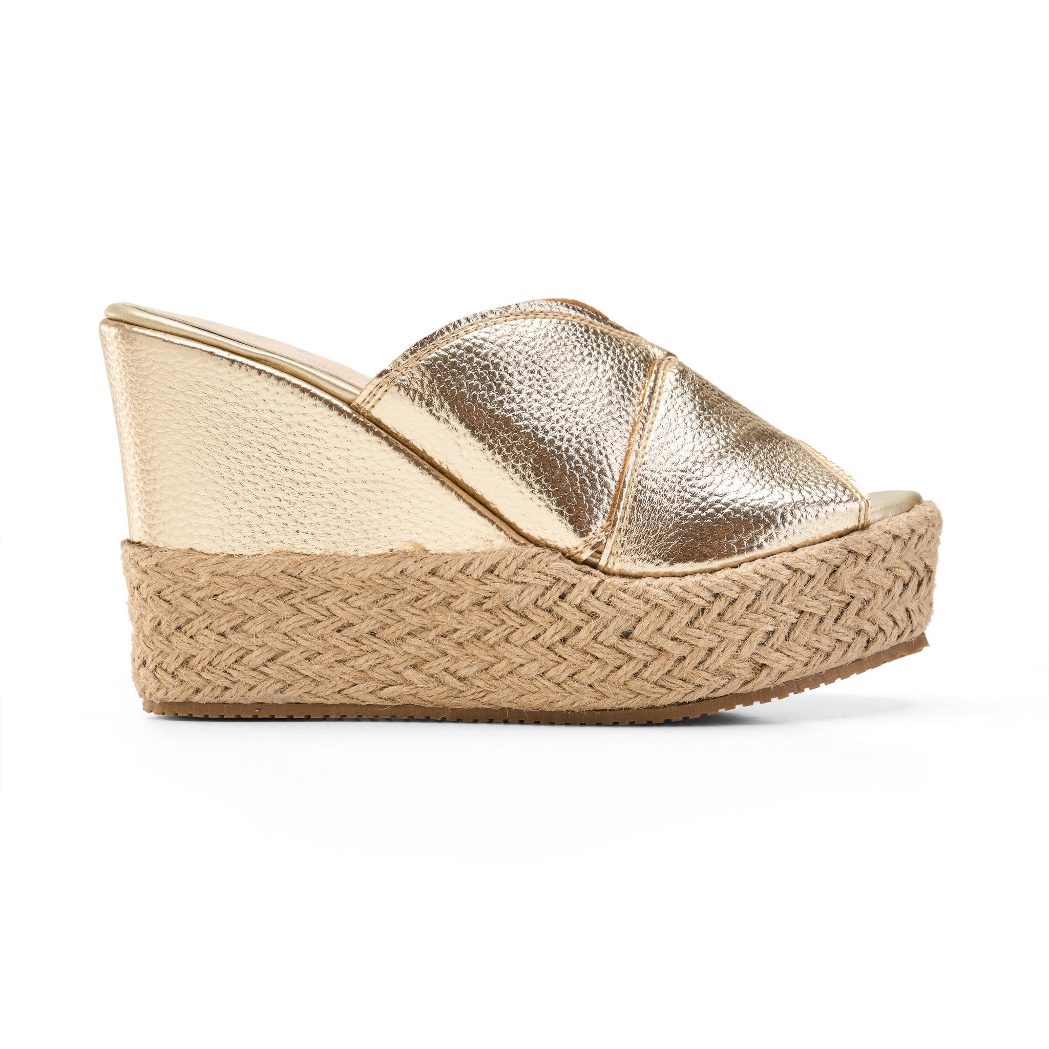 Elevate your summer wardrobe with our Metallic Espadrille Wedges. Combining a high-fashion glossy finish with the natural, rustic charm of a woven platform, these sandals are the ultimate statement piece for sunny days and warm evenings.