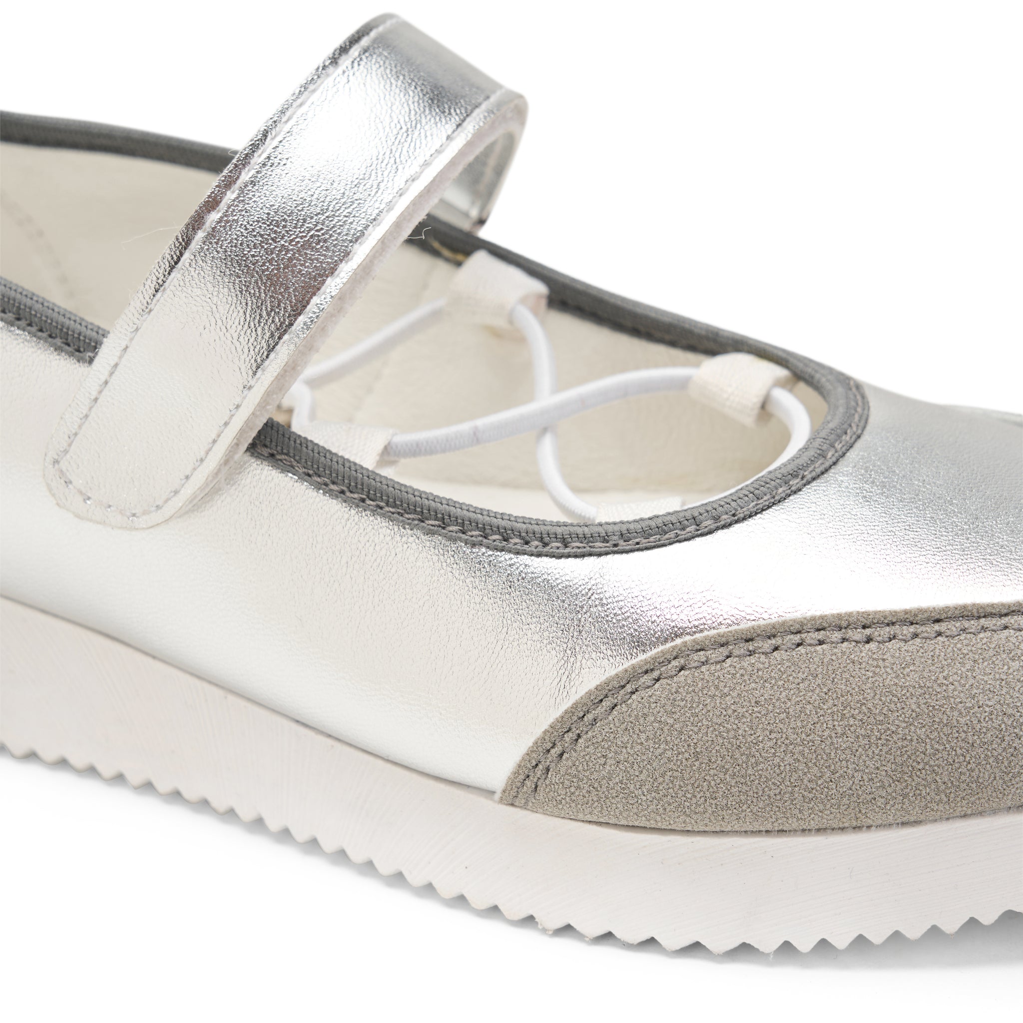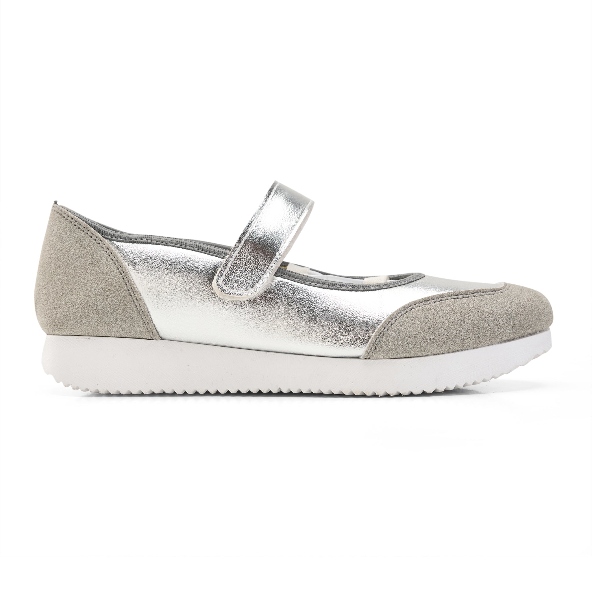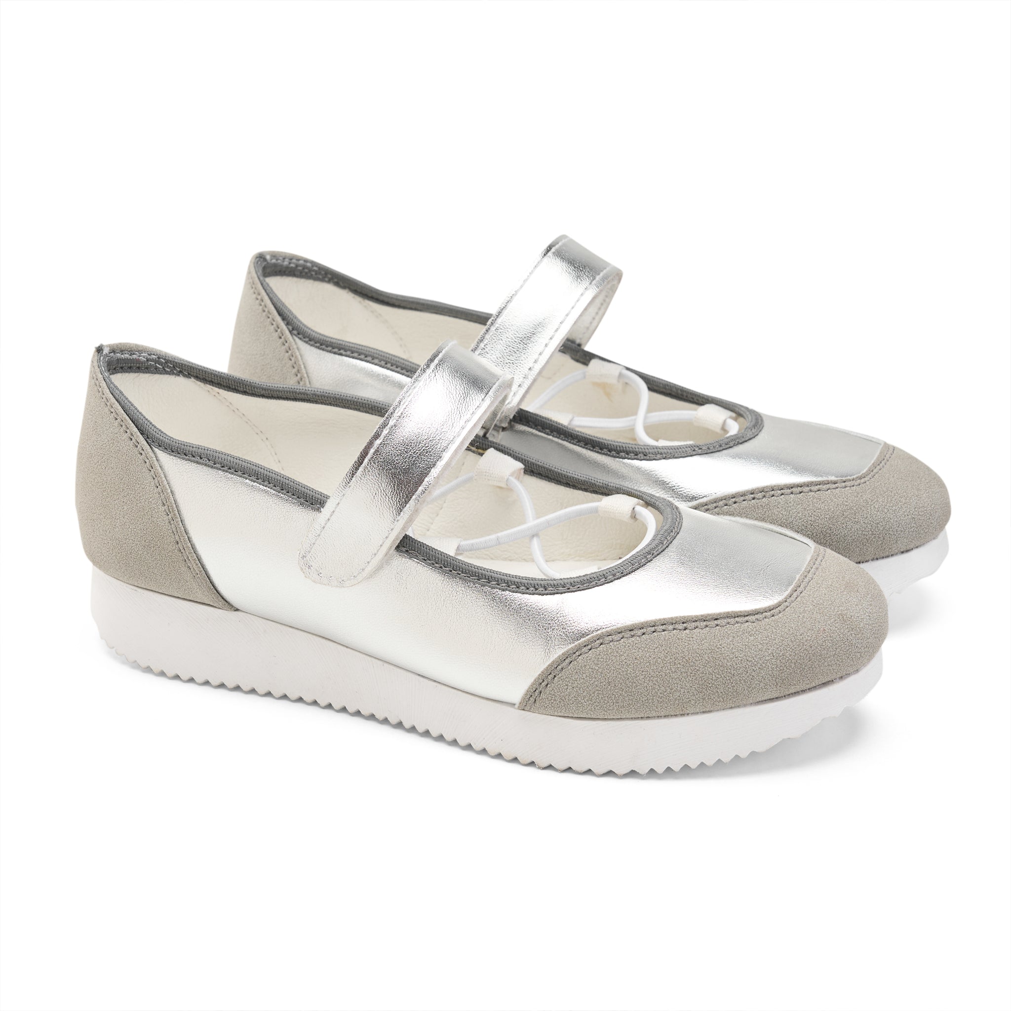 Step into the spotlight with our Metallic Mary Jane Flats. This pair reimagines the timeless Mary Jane silhouette with a bold, high-shine finish and a sporty twist, offering a sophisticated look that doesn't compromise on comfort.