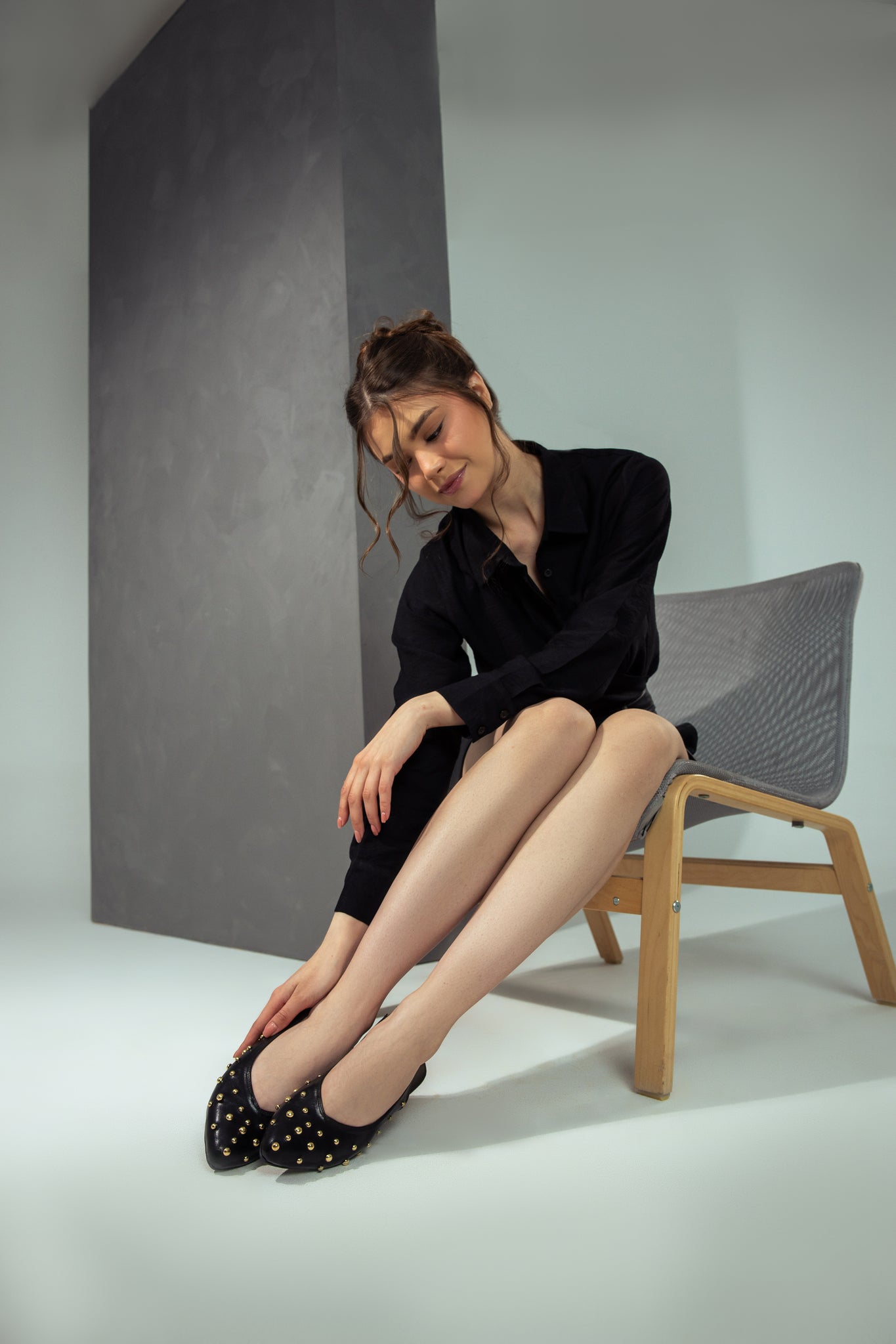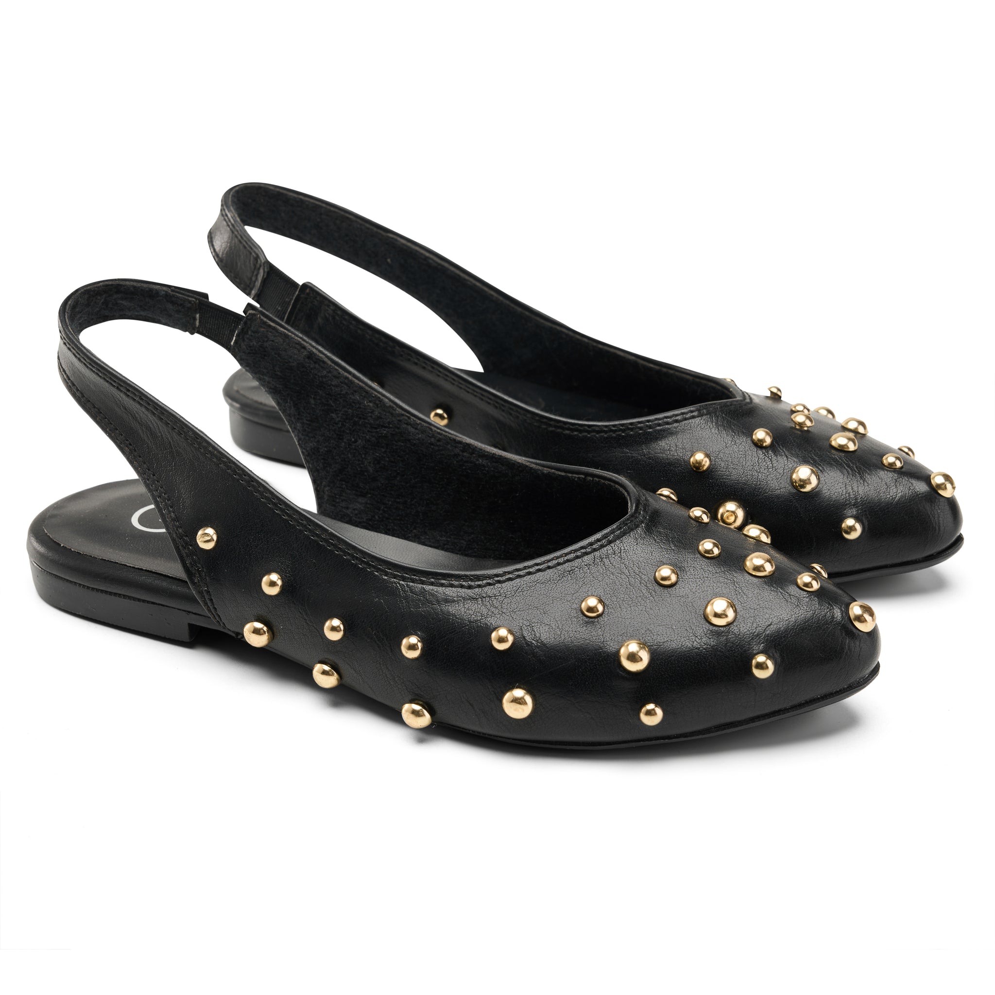 Studded Slingback Flats - Black