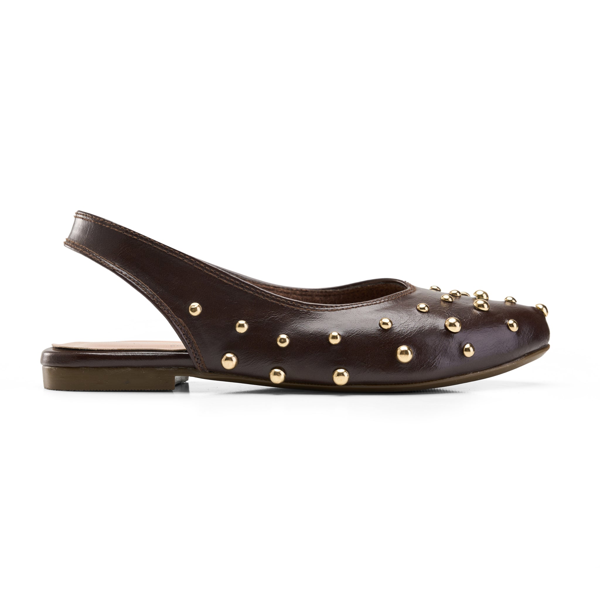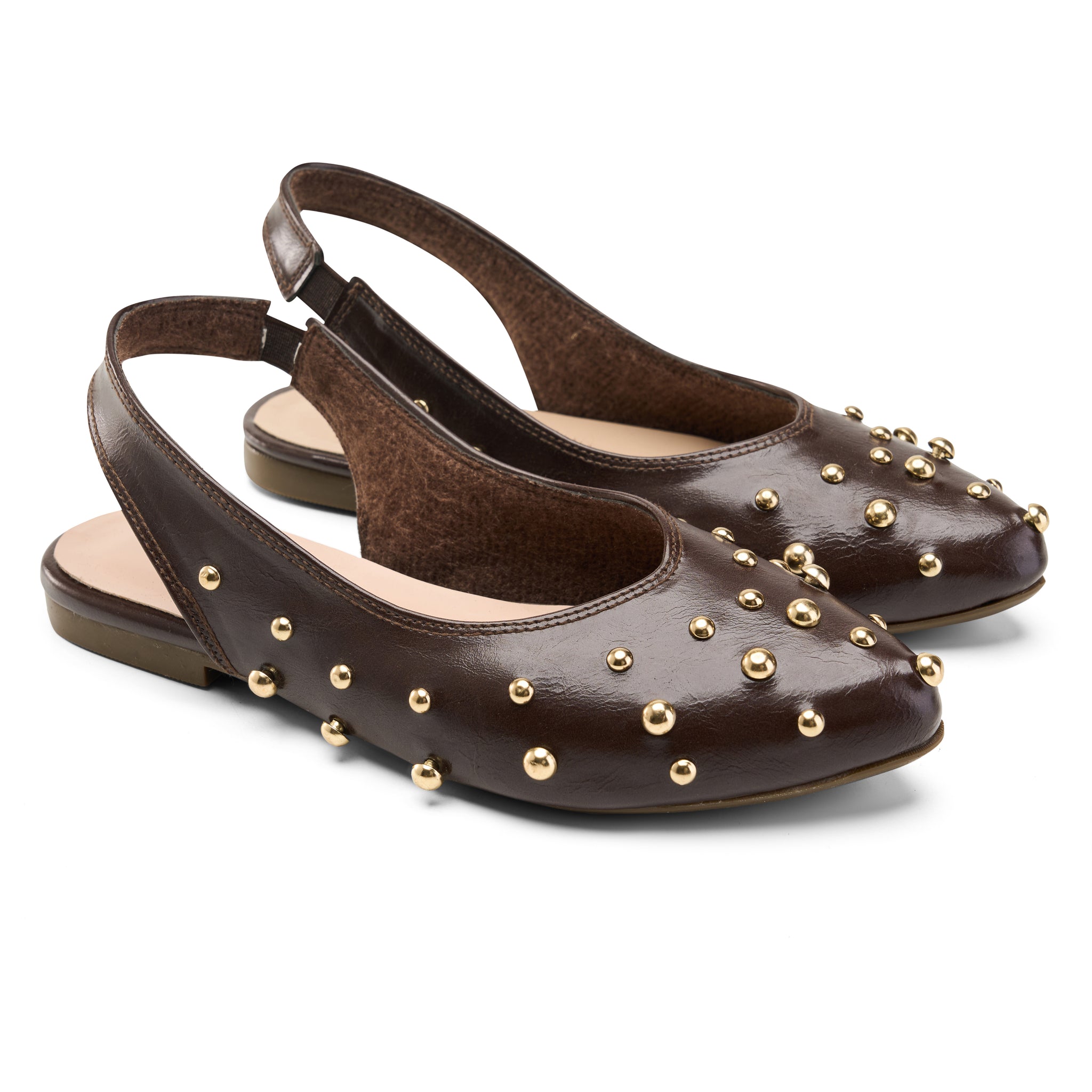 Studded Slingback Flats - Brown