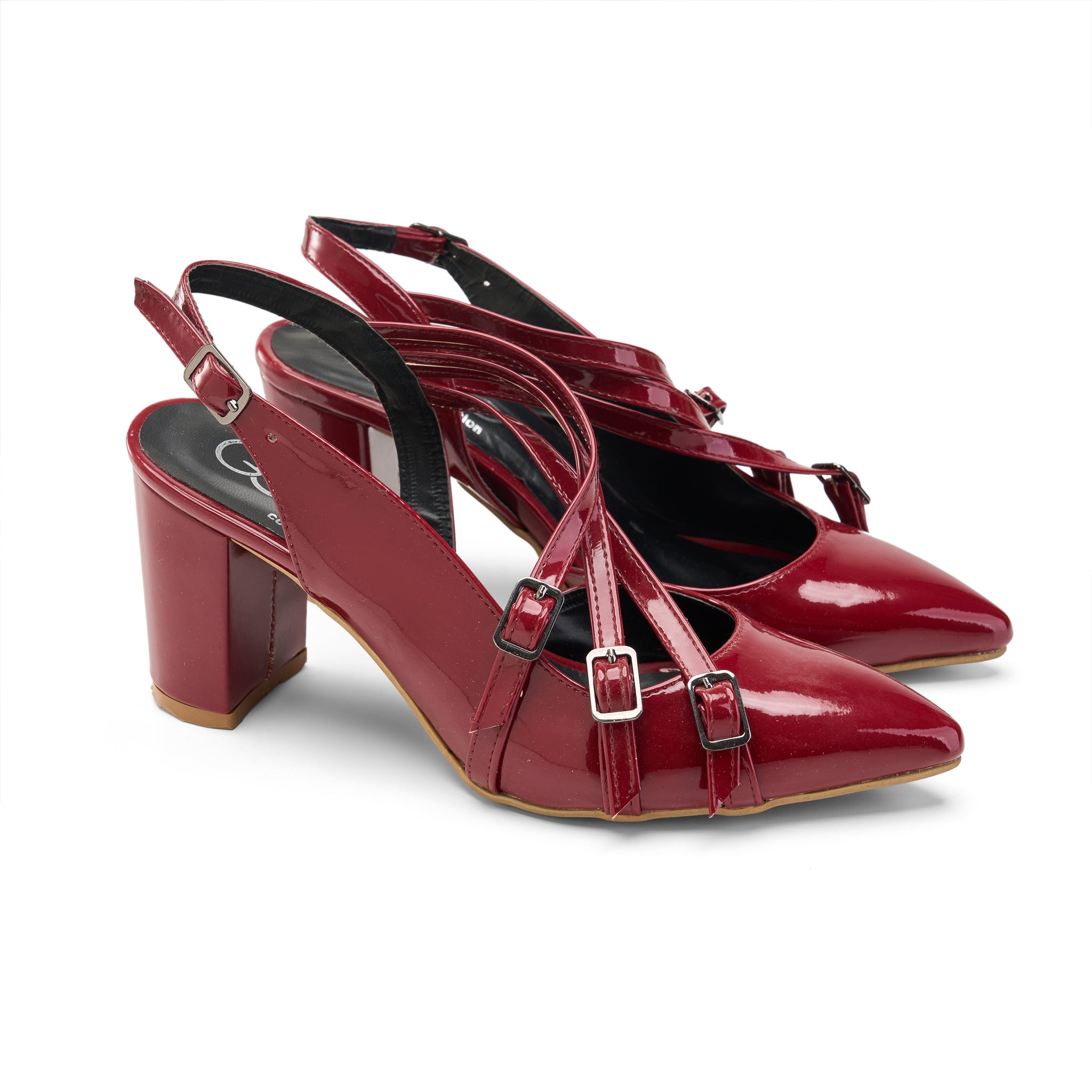 Multi-Strap Pointed Heels - Maroon