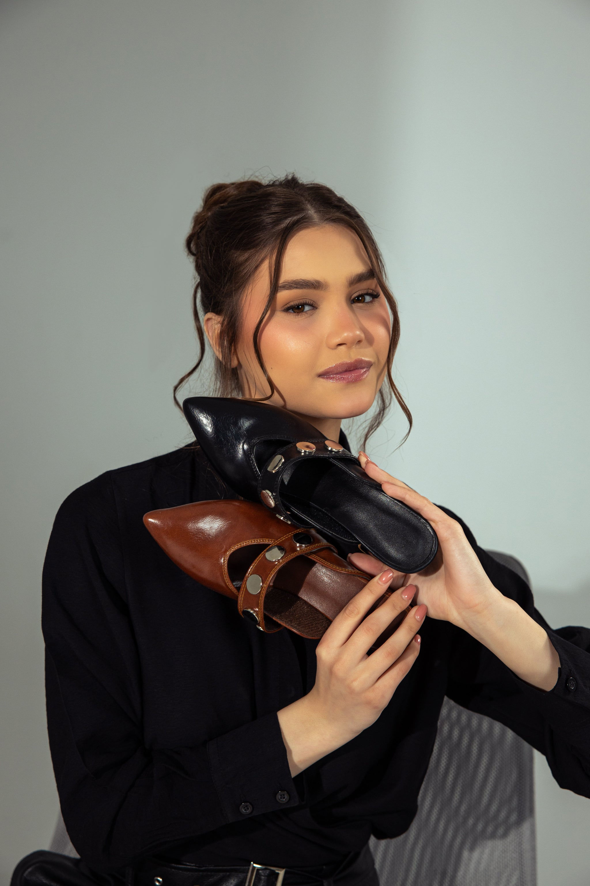 Elevate your everyday style with these sophisticated Metal-Detail Pumps. Designed with a sleek pointed toe and a sturdy block heel, these shoes offer the perfect balance of vintage charm and modern edge. The bold metallic studs on the strap add a touch of personality to any outfit.