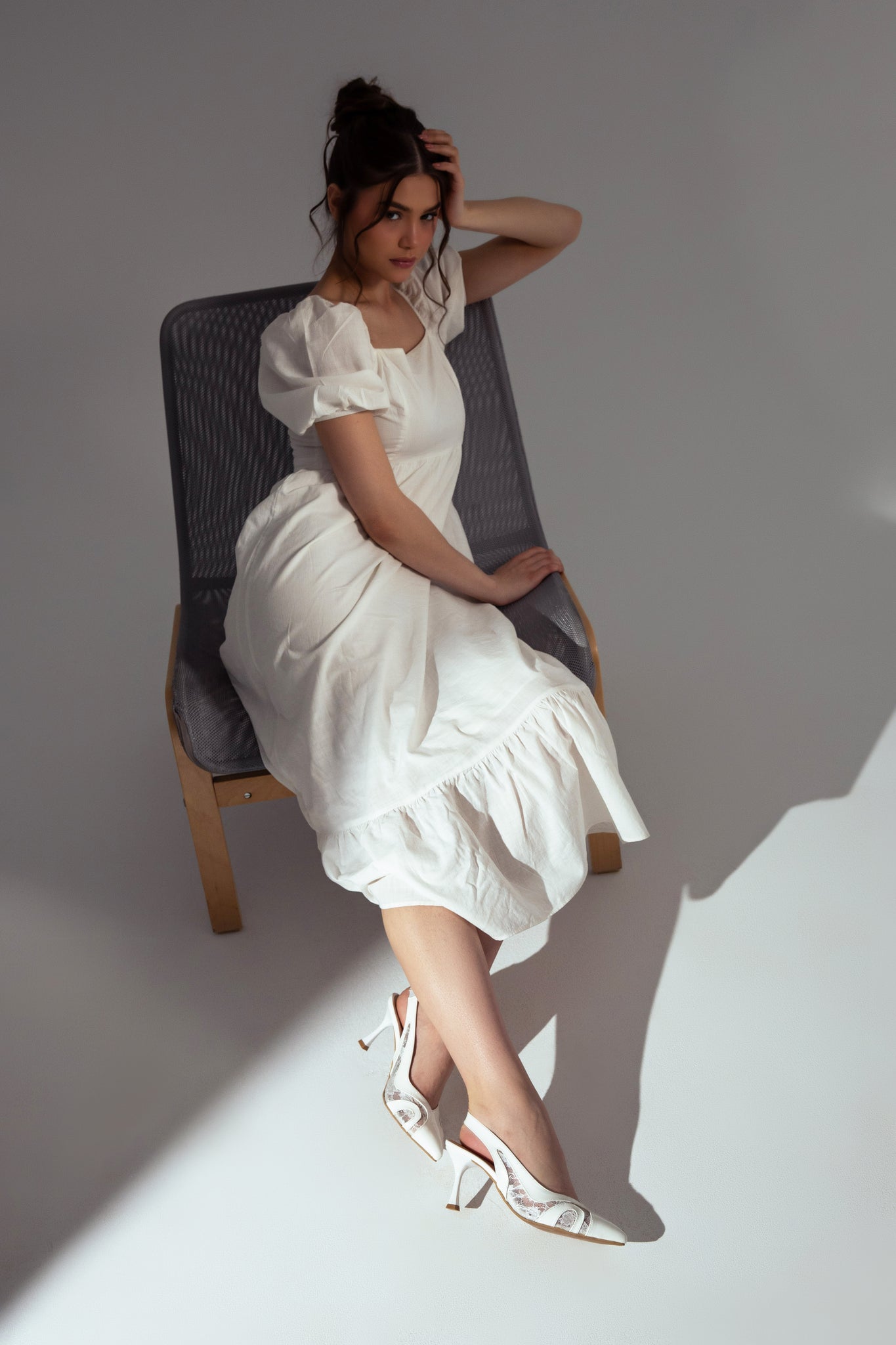 Lace Slingback Heels - White