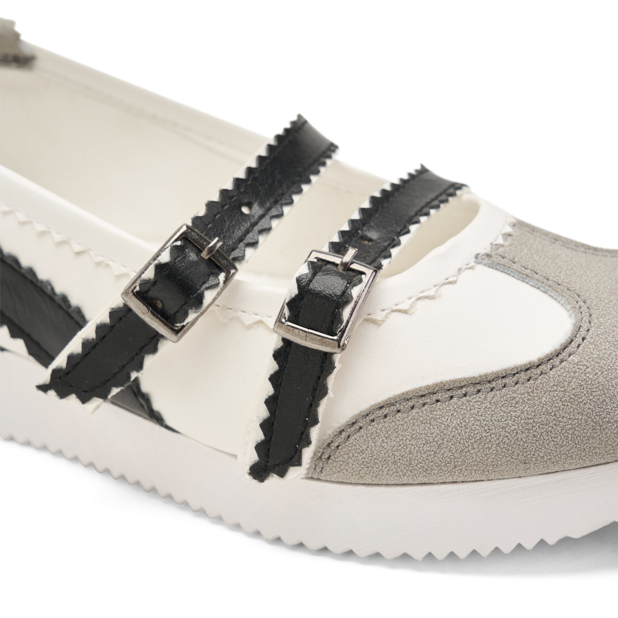 A sophisticated take on the classic Mary Jane. These multi-strap flats combine vintage-inspired buckle details with a modern, sporty sole, creating a unique look that stands out in any crowd.